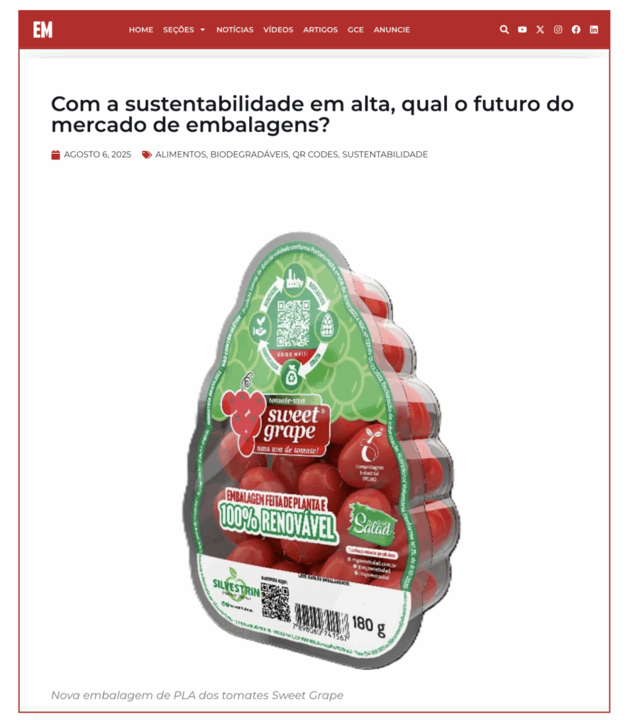 A primeira embalagem compostável para o segmento de Frutas, Legumes e Verduras (FLV) do Brasil, desenvolvida para o tomate Sweet Grape, tem chamado a atenção da imprensa nacional. A novidade foi destaque no Portal EmbalagemMarca, um dos veículos mais relevantes do país em tendências e inovação no setor de embalagens.